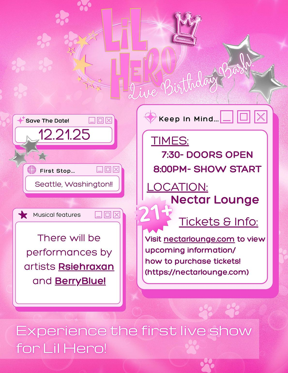 Rising hyperpop artist Lil Hero will perform her debut 21+ live show at Nectar Lounge in Seattle, WA on December 21. After going viral with “Hero Rider Jeans (Dun Dun Dun)”, this marks her first official step from internet icon to live performer. The event doubles as a birthday celebration for Hero.